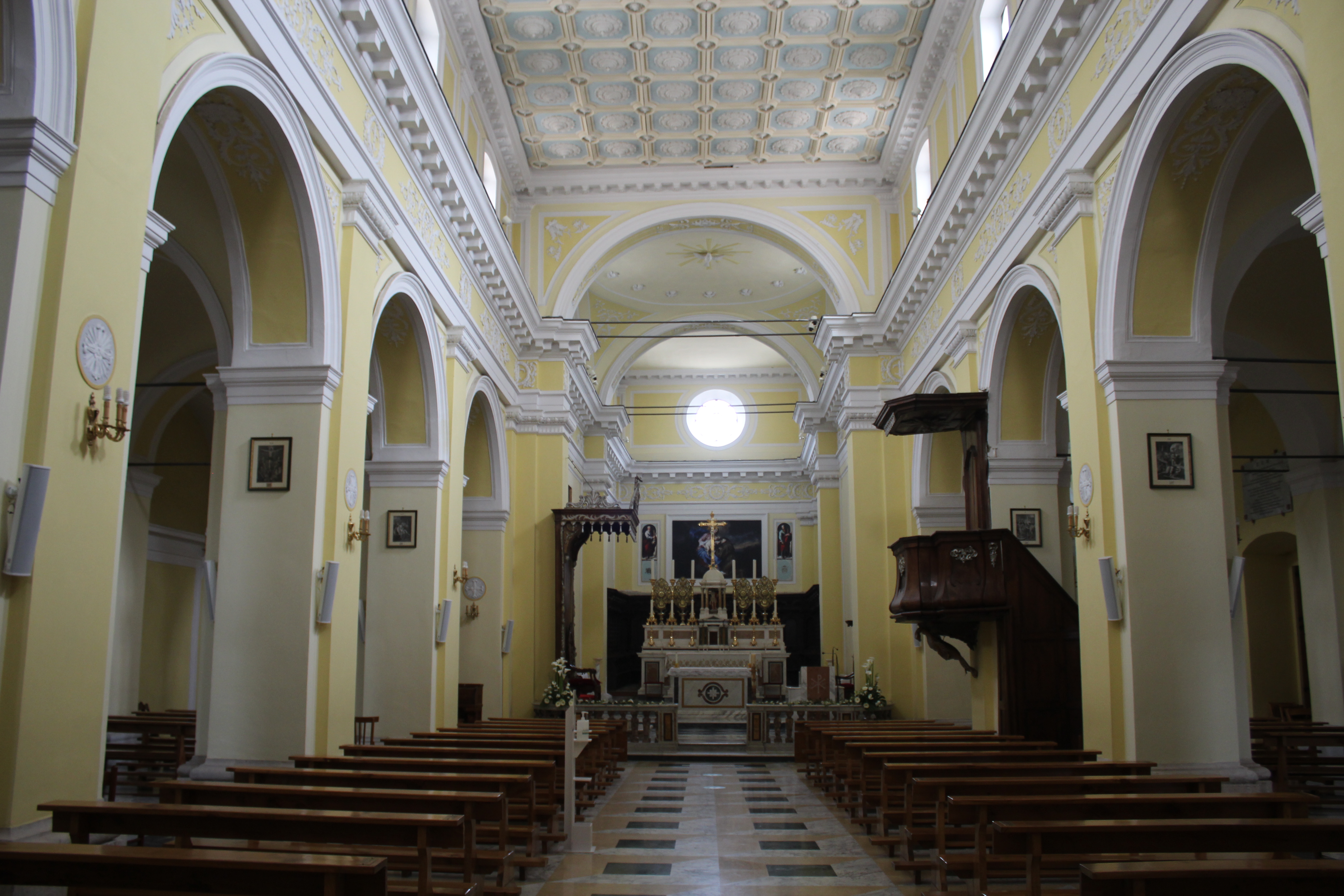Al suo interno, la Concattedrale dell’Arcidiocesi di Sant’Angelo dei Lombardi - Conza - Nusco - Bisaccia si presenta con tre navate divise da colonne, in cui è conservato un coro ligneo seicentesco e due ricchi altari marmorei policromi.