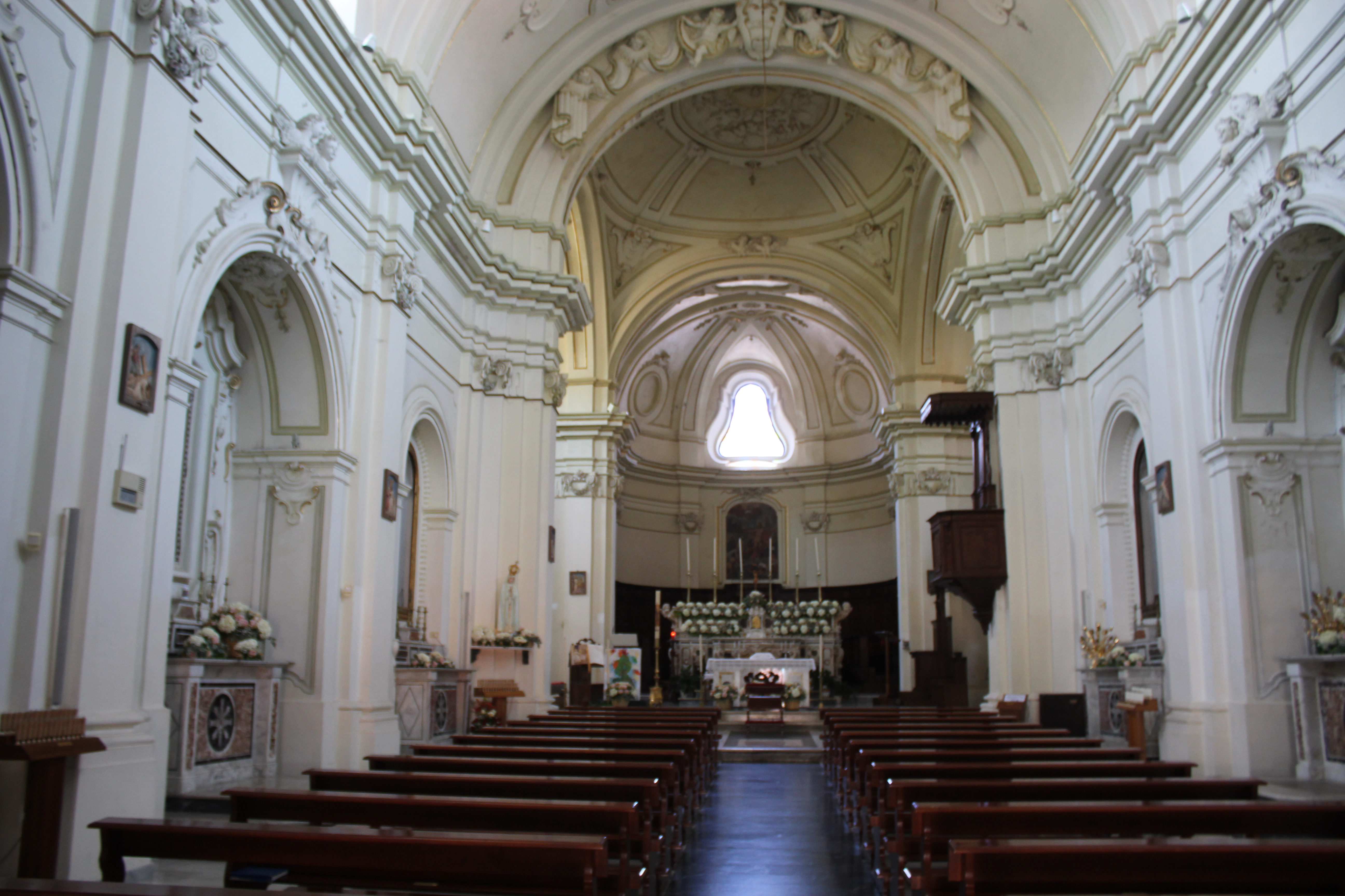 Devastata dal sisma del 1732 e ricostruita in stile vanvitelliano nel 1754 con interni attribuiti a Domenico Vaccaro, la Collegiata di San Giovanni Battista è un piccolo gioiello nel cuore del borgo di Carife.
