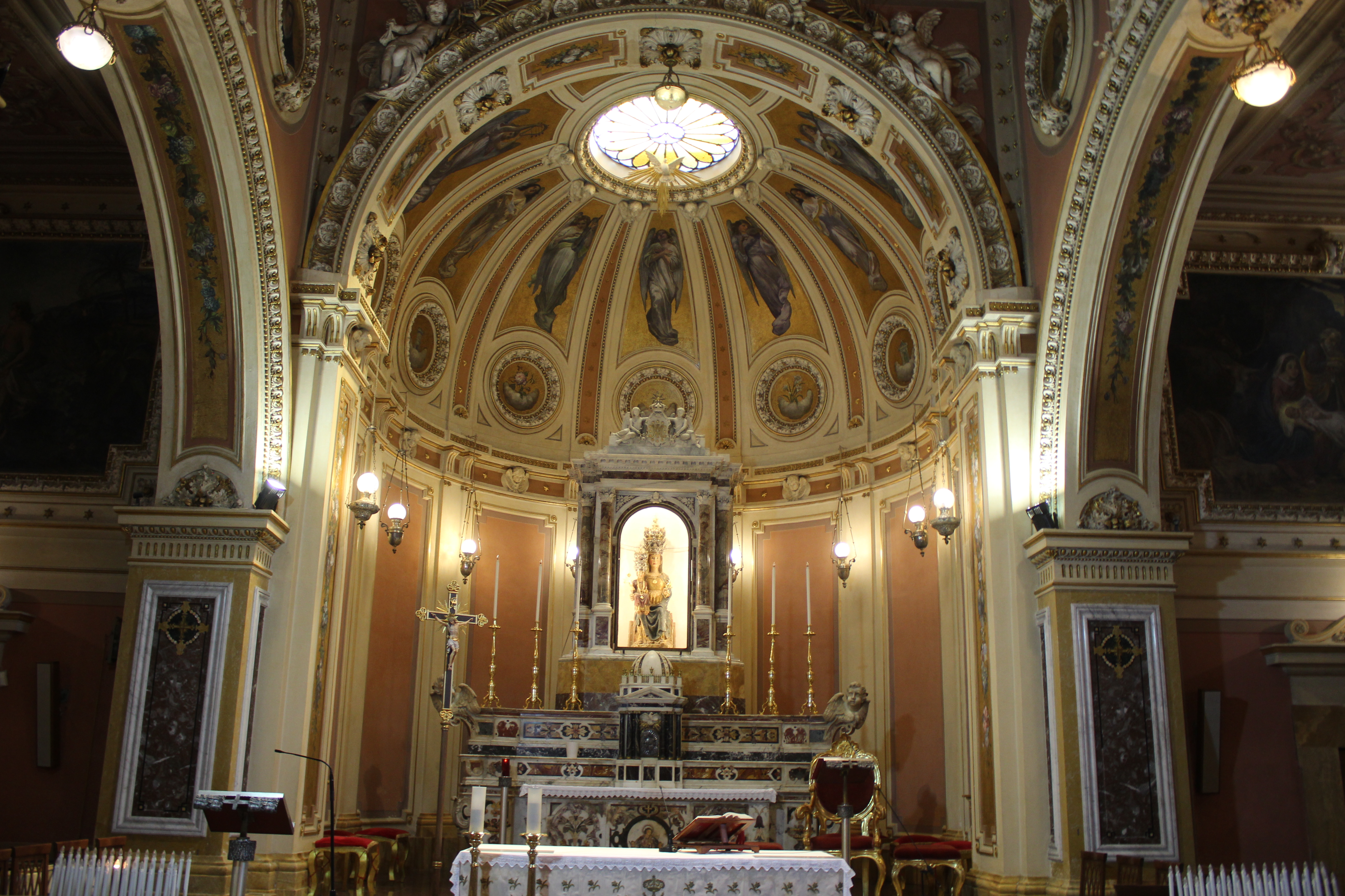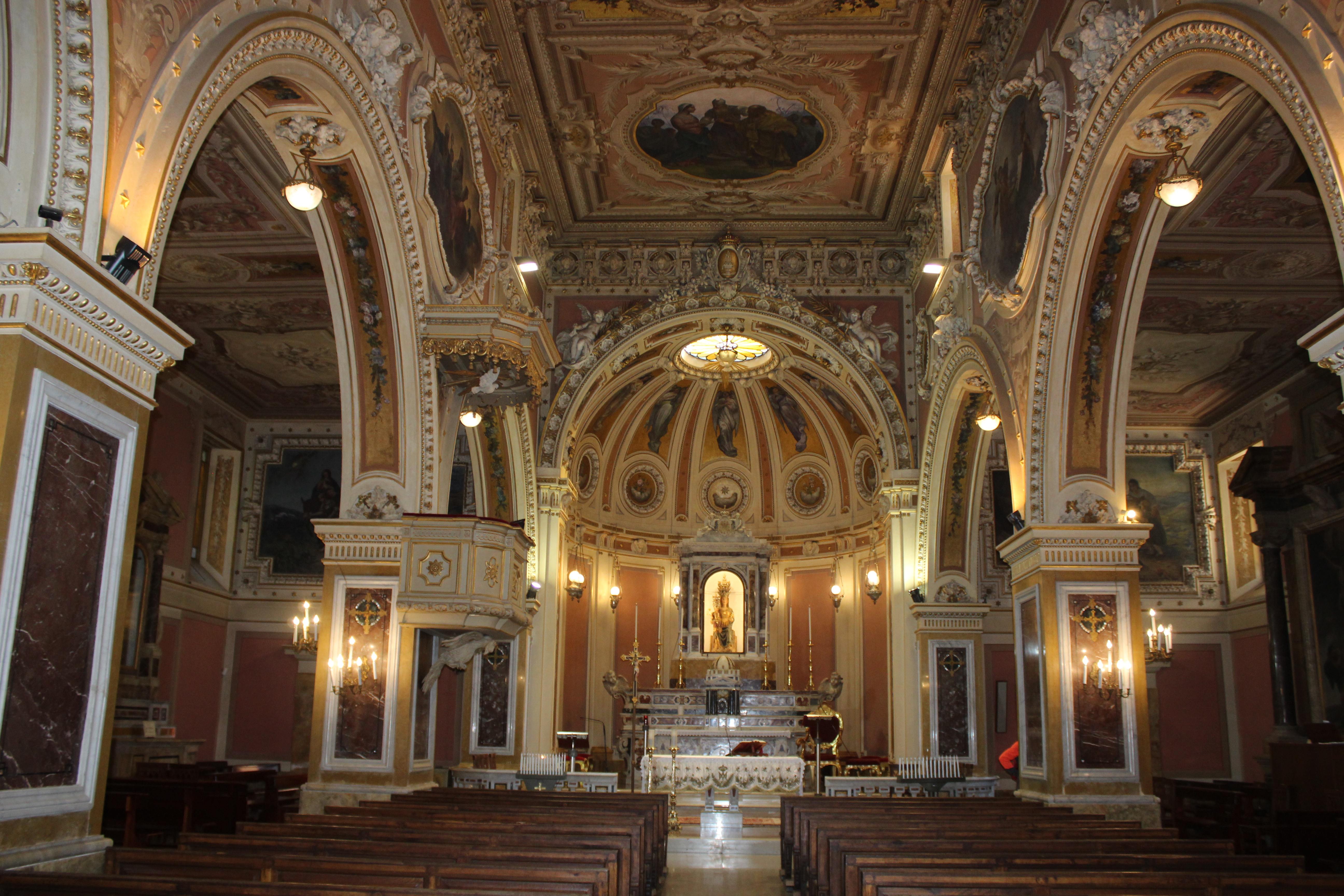 Oggi l’edificio si presenta, dopo tantissimi interventi di restauro che ne hanno trasformato l’aspetto, con le sue tre navate e i sei altari posti nelle navate laterali, dominati dall’altare maggiore, posto nello spazio del coro absidale. All’interno, il Santuario custodisce manufatti e decori sfarzosi che ricalcano le tante epoche storiche attraversate dal culto mariano. Non a caso, tutto nel santuario ruota attorno alla statua di età tardo medievale raffigurante Santa Maria della Misericordia. Altri elementi di richiamo del Santuario sono il portale in pietra e una cappella del 1731, oggi basilica, che custodisce un trittico in legno policromo risalente al XVII secolo, donato dal principe Carlo Gesualdo, e un dipinto della Vergine con bambino che dona il giglio a Sant'Antonio, riconducibile alla scuola napoletana di Luca Giordano.